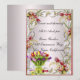 Lindo buquê de tulipas com um acabamento em folha de ouro. Este lindo cartão de recepção está pronto para ser personalizado para o seu dia especial de casamento. Personalize o cartão alterando o texto nos campos fornecidos na frente e no verso. Você pode alterar o estilo, tamanho e cor da fonte, bem como o tipo e estilo de papel.