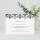 Projetado para coordenar com nosso casamento e convites para eventos de Marraquexe, este cartão de recepção elegante em preto clássico e branco apresenta uma fronteira geométrica de cima inspirada por Marrocos. Adicione seus detalhes de recepção, como horário, local e endereço, e qualquer informação de estacionamento ou transporte usando os campos fornecidos.