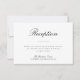 Um cartão de informação de recepção de casamento com um tema simples preto e branco e texto de caligrafia.