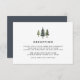 Cartão de recepção verde caçador e branco combina com nossos convites de casamento e evento rústico-chique Tall Pines, e apresenta silhuetas de pinheiros em tons escuros de verde. Personalize com os detalhes da recepção do seu casamento, incluindo horário, local e qualquer informação adicional.