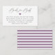 Chamada de assinatura elegante "Livros para Bebê", cartão de solicitação de livro de chá de fraldas. Os cartões apresentam sotaque cardíaco empoeirado de lavanda e padrões de estrias roxas e brancas correspondentes.