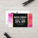 Coordenadas com o Modelo de cartão de negócios de Artista das Aquarelas Cor-de-Rosa Negrito Maquiçam até 1201AM. Este cartão de referência/cartão de desconto apresenta uma lavagem de aquarelas cor-de-rosa brilhante para uma bela identidade de marca. Este design faz parte de uma série de material de escritório para ajudar a marca de sua empresa de maquiagem. Personalize a promoção para sua própria oferta ou desconto. Esta design faz parte de uma série de material de escritório para ajudar a marca de sua beleza. Arte com aquarela original e design © 1201AM CREATIVE / www.1201am.com