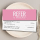 Simples cartão de referência branco-rosa MINI para profissionais de beleza. Design simples, totalmente personalizável.