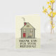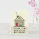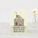 Um cartão de agradecimento de referência profissional com uma encantadora casa ilustrada com uma porta vermelha, chaminé vermelha e varanda frontal aconchegante. A mensagem em negrito “OBRIGADO PELA SUA REFERÊNCIA!” torna-o ideal para corretores de imóveis, corretores de hipotecas ou prestadores de serviços que desejam expressar gratidão a clientes, colegas ou parceiros. Em branco no interior para sua nota manuscrita. Uma forma calorosa e amigável de se manter conectado.