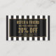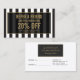 Coordena-se com o Modelo de cartão de negócios Salão III da faixa branca e preta até 1201AM. Um cartão de referência na moda salon com fundo listrado preto e branco inspirado na safra. Atualize o texto de promoção para a oferta desejada. Gerar mais vendas e visitas, incentivando seus clientes a encaminhar seus amigos para um serviço ou produto gratuito com desconto. Excelente para salões de beleza, maquiadores, boutiques, cabeleireiros, cosmetólogos e muito mais. © 1201AM CREATIVE