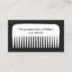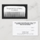 Design divertida e memorável com pente branco grande em fundo preto. Um cartão de referência super fofo disfarçado de um certificado de presente para ambas as partes. Excelente para qualquer pessoa na indústria da beleza ou da moda. Esquema de cores preto e branco.