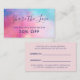 Um belo cartão de referência impresso com abstrato trabalho de arte em diferentes tons de rosa, azul e violeta. Compartilhar o Amor é escrito em um roteiro azul marinho.