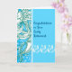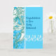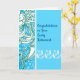 Bonito cartão azul com um design floral à esquerda e uma fileira de flores brancas à direita sob as palavras. O escrevendo é azul mais escuro. Obrigados a Design e Hawksmont para alguns dos elementos do design.
