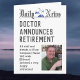 Cartão de aposentadoria na forma de jornal. Doutor Retirement.