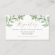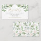 Cartão de registro branco e elegante. Apresenta ilustrações de aquarelas de flores verdes e brancas com um padrão botânico correspondente. Personalize adicionando nomes, nomes de armazenamento e outros detalhes. Este cartão de registro verde será perfeito para casamentos, chás de panela, chás de fraldas e outros eventos.
