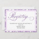 Cartão de Registro de Casamento em Roxo Lavanda com Renda e Caligrafia. Veja a coleção completa.