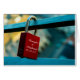 Esta carta vem da tradição europeia iniciada durante a I GG de fixar "fechaduras de amor" inscritas com nomes de amantes em pontes, cercas e monumentos e jogar fora a chave para simbolizar o amor eterno e inviolável (esta informação está escrita no verso da carta, mas pode ser removida). Entre em contato comigo se tiver algum problema em personalizar o cartão e eu ficarei feliz em fazer isso por você.