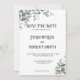 Um belo cartão de "Reserve a Data" em um design simples e elegante decorado com folhas de Eucalipto.