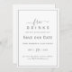 Faça seu anúncio ser inesquecível com este cartão de Reserva do Dia “Bebidas Grátis” minimalista de prata. Com um design moderno e elegante com um toque divertido—perfeito para celebrações de casamento divertidas, casuais ou contemporâneas.