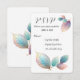Essa imagem apresenta um design limpo e sofisticado centrado em folhas delicadas e de cor pastel. As folhas têm uma qualidade translúcida, quase etérea, com tons macios de azul, rosa e lavanda se misturando perfeitamente. O fundo branco minimalista melhora a elegância design, chamando a atenção para detalhes sutis da folhagem. Isso cria uma estética calmante e inspirada na natureza, perfeita para ocasiões modernas e românticas.