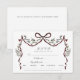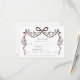 Este charmoso cartão de RSVP apresenta um arco floral rústico e uma ilustração delicada de asas, perfeito para um casamento caprichoso. O design inclui espaço para os convidados indicarem sua escolha de refeição (carne, frango, peixe, vegetariano, vegano) e para adicionar quaisquer alergias ou necessidades especiais no verso. As frases "Aceitamos gentilmente" e "Lamentamos recusar" são elegantemente impressas, orientando as respostas dos seus convidados. É projetado para complementar um tema de casamento natural, vintage ou boêmio, adicionando um toque pessoal ao seu dia especial. Certifique-se de que as necessidades de todos os seus convidados sejam atendidas com este cartão de resposta cuidadosamente projetado, tornando o planejamento do seu casamento tranquilo e lindo. Por favor, responda até 1º de agosto para finalizar o número de convidados.