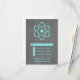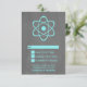 Cartão de Resposta de Casamento Atômico, bonito e nerd, com um símbolo atômico simples em turquesa sobre um fundo de aparência de quadro. Este cartão RSVP de casamento, geek e divertido, é perfeito para o casal de entusiastas da ciência! Fácil de personalizar, basta adicionar os detalhes do seu casamento nos espaços fornecidos. Clique em "Personalizar" para encontrar mais opções de personalização.