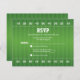 Cartão de resposta de Bar Mitzvah de futebol verde e branco. Este design de cartão de resposta de Bar Mitzvah de futebol americano apresenta um fundo de grama verde que se assemelha a um campo de futebol. Há também marcações e números brancos que são encontrados em um campo de futebol. Este fundo de campo de futebol verde e branco é combinado com uma fonte de estilo esportivo. Este cartão de resposta de Bar Mitzvah de futebol funcionaria bem para um Bar Mitzvah temático da NFL ou do Super Bowl. Este cartão de resposta de Bar Mitzvah de esportes de futebol pode funcionar para qualquer estação e é uma ótima escolha para um menino que ama futebol americano.