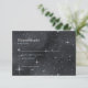Obtenha uma resposta celestial de seus convidados com nosso cartão de RSVP da Coleção Celestial de Fases da Lua de Noite Estrelada. Este cartão requintado apresenta um design cativante em preto e branco que imita a beleza de um céu estrelado noturno, estabelecendo o tom para uma celebração inspirada nos céus. O design minimalista, porém elegante, é perfeito para casais que se sentem atraídos pela beleza celestial, astrologia ou o encanto místico do céu noturno.