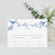 O cartão de RSVP de casamento da primavera Delft Blue Birds foi projetado para combinar com nossa Coleção de Convites de Casamento da primavera Delft Blue Birds. Com elegantes pássaros azuis de Delft pousados em uma delicada ilustração de flores em galhos, este convite captura a beleza encantadora do casamento da primavera. Itens correspondentes estão disponíveis.