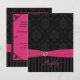 Este cartão de RSVP damasco preto e cinza carvão tem uma fita impressa rosa quente e uma fivela de jóias de diamante impressa que combina com o convite de casamento mostrado abaixo. Se você precisar de outros itens correspondentes, ou gostaria de tê-lo em outra combinação de cores, envie um e-mail para niteowlstudio@gmail.com com sua solicitação.