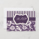 Cartão de Resposta Damasco de Listra Roxa, Creme e