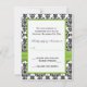 Este cartão de resposta damask preto e branco com uma fita impressa na cor verde lima e broche de strass combina com o convite de casamento mostrado abaixo. Se você precisar de outros itens correspondentes ou quiser em outra combinação de cores, envie um e-mail para niteowlstudio@gmail.com com sua solicitação.