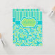 Cartão de Resposta Damask Listrado Azul Verde Bran