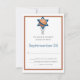 A placa de resposta de basquete judaico azul-laranja pode ser solicitada com o convite correspondente do Bar de basquete judaico-laranja Mitzvah. As placas Mitzvah, Bar de basquete judeu azul Rsvp laranja, vêm com envelopes de vazio, você pode comprar as etiquetas correspondentes para ele colocar na frente dos envelopes.