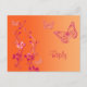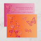 Este cartão de resposta floral cor-de-rosa e laranja com borboletas corresponde ao convite de casamento mostrado abaixo. Se você precisar de outros itens correspondentes neste design, envie seu pedido por e-mail para niteowlstudio@gmail.com.