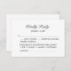 Apresentamos o nosso moderno e elegante cartão de RSVP de casamento! Cause uma ótima impressão com este acessório de convite elegante e contemporâneo que complementa perfeitamente o tema do seu casamento. Criado com atenção aos detalhes, este cartão deixará uma impressão duradoura nos seus convidados. Este cartão apresenta caligrafia delicada e sofisticada, convidando seus entes queridos a responder gentilmente ao seu convite de casamento. A bela escrita adiciona um toque de graça e define o tom do seu grande dia. Dê aos seus convidados uma prévia deliciosa dos prazeres culinários que os aguardam na recepção do seu casamento com nossas opções de menu personalizáveis. Seja um jantar suntuoso de várias opções ou um buffet divertido, seus amigos e familiares podem indicar suas preferências e necessidades alimentares sem esforço. Então, por que esperar? Faça uma declaração de estilo com nosso cartão de RSVP elegante e impressione seus convidados com seu charme contemporâneo. Peça o seu hoje e prepare-se para receber respostas rápidas de seus entes queridos, garantindo um processo de planejamento tranquilo para o seu grande dia.