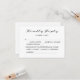 Apresentamos nosso cartão de RSVP de casamento minimalista e elegante, o complemento perfeito para o seu dia especial! Com um design contemporâneo, este cartão sofisticado não só ajudará a manter o controle da lista de convidados, mas também adicionará um toque de sofisticação à papelaria do casamento. Nosso cartão de RSVP transmite um senso de graça e formalidade, convidando amigos e familiares a responder prontamente. A deliciosa caligrafia adiciona um toque extra de sofisticação para definir o tom do seu casamento. Para proporcionar uma experiência de planejamento sem complicações, incluímos uma seção de seleção de menu simples, mas atenciosa, no nosso cartão de RSVP. Isso permite que os convidados indiquem suas preferências de refeição, garantindo que todos sejam atendidos no grande dia. Criado com atenção aos detalhes, nosso cartão de RSVP captura a essência da modernidade, mantendo um apelo atemporal. Suas linhas limpas, design discreto e materiais de alta qualidade tornam-no um complemento delicioso para qualquer tema de casamento. Não perca a oportunidade de elevar a papelaria do seu casamento. Encomende seus cartões de RSVP hoje e dê o primeiro passo em direção a um conjunto de casamento polido e coeso.