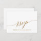 Este cartão de resposta RSVP de site de casamento com caligrafia em ouro é perfeito para um casamento simples. O design neutro apresenta um cartão minimalista decorado com tipografia romântica e caprichosa em fólio de ouro falso. Personalize o cartão de resposta online com seu RSVP por data e endereço do site do casamento. Se seus convidados não precisarem de uma senha para acessar o site, você pode substituir o texto por um método alternativo de RSVP ou uma mensagem curta para seus convidados.