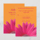 A cor do texto e do fundo nestes cartões de resposta ou RSVP de casamento com margaridas gerber rosa e laranja tangerina são totalmente personalizáveis. Você pode alterar o texto com as opções de personalização. Para alterações mais extensas no cartão, incluindo a alteração da cor do fundo, fonte, cor da fonte ou layout do texto, use a opção personalizar. As cores deste cartão são rosa vibrante e laranja tangerina brilhante. Seria ótimo para um casamento com tema de margarida gerbera rosa. Certifique-se de verificar também as opções de tipo de papel disponíveis. Com alterações no texto, isso faria uma boa direção, recepção, acomodação e/ou cartão de inserção de informações gerais do casamento.