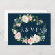 Elegante Cartão de Resposta de Casamento com uma grinalda de flores em aquarela em rosa e branco com folhagem verde. Para personalização avançada deste design, clique no botão "Personalizar". Itens correspondentes também estão disponíveis.
