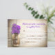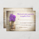 belos cartões de resposta de casamento rústico - cartões de resposta de casamento com fundo de madeira desgastada e jarra de Mason com flores roxas. Sugiro um papel de textura de linho lindo para este design.