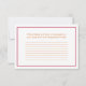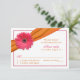 O texto neste cartão de resposta de casamento com flor de gerbera rosa (gerbera rosa) e laço laranja é totalmente personalizável. Para alterá-lo, use a opção personalizar. Para alterações de texto mais extensas, como alterações na fonte, cor da fonte, tamanho da fonte ou posicionamento do texto, use a opção personalizar. Nota: no verso, este cartão de resposta tem um espaço para os convidados fazerem uma nota de quaisquer necessidades alimentares especiais ou alergias alimentares.