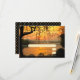 Um cartão de resposta de casamento romântico com luzes de corda em uma árvore com vista para a água ao pôr do sol. Na árvore, você pode ver dois passarinhos apaixonados cantando uma canção de amor.