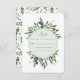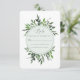 Cartão de resposta de casamento com moldura geométrica dourada. Moldura metálica verde com decoração de folhagem em aquarela. Parte de uma coleção.