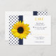 O texto neste cartão de resposta de RSVP de casamento com girassóis e pontos navy e branco é totalmente personalizável. Para alterá-lo, use a opção personalizar. Para alterações de texto mais extensas, como alterações na fonte, cor da fonte ou layout do texto, use a opção personalizar.