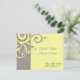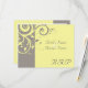 Cartão de RSVP para combinar com o convite de casamento com redemoinho invertido amarelo e cinza, com um fundo sofisticado e suave de folhas em grafismo de redemoinho. Personalize online com os detalhes do seu casamento.