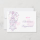 Pássaros roxos e cor-de-rosa abrem os RSVPs de casamento.casal de pássaros bonitos em desenho gráfico de linhas de uma gaiola de pássaros aberta pendurada numa primavera com corações. design de casamento moderno e fascinante da gaiola de pássaros. Bonito cores pastéis de roxo, rosa e branco. Edite este convite RSVP com seus nomes, datas e texto. Desenho de linha e design exclusivo de Sarah Trett para www.mylittleedenweddings.com