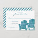 As cadeiras de praia de Adirondack têm um cartão de design de Teal em um design de casamento de estilo moderno para uma praia de destino ou um casamento de cruzeiro.