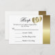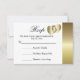 Cartão de Resposta de Casamento com Desenho de Corações Dourados Elegantes. 100% Personalizável. Pronto para preencher na(s) caixa(s) ou Clique no botão PERSONALIZAR para adicionar, mover, excluir ou alterar qualquer texto ou gráficos. Feito com vetor de alta resolução e/ou gráficos digitais para uma impressão profissional. NOTA: (ESTE É UM IMPRESSO. Todos os desenhos de produtos da Zazzle são "impressos", a menos que indicado de outra forma na área "Sobre Este Produto") O design será impresso EXATAMENTE como você vê na tela e no produto... então, por favor, certifique-se de que, ao fazer alterações no redimensionamento de qualquer gráfico ou texto, ele caiba corretamente nas áreas e que a ortografia e a redação sejam como você gostaria em tamanho, cor e fonte. Se tiver alguma dúvida sobre este design, por favor, entre em contato comigo em siggyscott@comcast.net ou visite o link da minha loja: http://www.zazzle.com/designsbydonnasiggy?rf=238713599140281