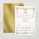 Você pode personalizar o texto neste cartão de resposta de RSVP de casamento art déco dos anos 20, branco e dourado, sofisticado e glamoroso. O design apresenta uma moldura art déco dourada simulada em um fundo branco. Para alterar o texto, use as opções de personalização. Ou, para alterações mais extensas (fonte, tamanho da fonte, cor da fonte, posicionamento do texto), escolha personalizá-lo. Este é um ótimo cartão de resposta de casamento para um casamento com tema retrô dos anos 20 (anos 20, 1920, proibição) sofisticado. Uma ótima ideia de festa de cultura pop. Esta foi a época da proibição, gângsteres, festas em speakeasy, música jazz e garotas flapper.
