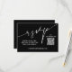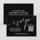 Esses cartões de inclusão de casamento preto e branco modernos são uma maneira fácil para seus convidados responderem no seu site de casamento. Inclua seu próprio código QR e site de casamento na frente e informações adicionais no verso (exclua nosso texto para deixar o verso em branco). As cores podem ser alteradas com nossas ferramentas de edição. Itens CORRESPONDENTES em nossa coleção.