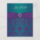 Este dramático cartão de resposta de casamento em damasco roxo e turquesa tem uma fita roxa IMPRESSA e um broche de jóias de diamante IMPRESSO que combina com o convite de casamento mostrado abaixo. A escolha do papel é personalizável. Se você precisar de outros itens correspondentes, por favor envie um email para niteowlstudio@gmail.com.