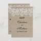 © 2013 Socialite Designs. Nosso cartão de resposta com fundo de juta rústica e desenho com aspecto de renda é perfeito para qualquer casamento rústico ou no campo. Uma encantadora combinação de textura e elementos femininos para um casamento romântico. POR FAVOR, OBSERVE QUE O FUNDO DE RENDAS E JUTA SÃO IMAGENS IMPRESSAS NO CONVITE E NÃO SÃO REAIS. Se precisar de AJUDA para personalizar ou necessitar de produtos adicionais para casamento com este design, por favor, entre em contato com a Socialite Designs.