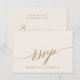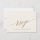 Este cartão elegante de RSVP para pedido de música em marfim com caligrafia dourada é perfeito para um casamento simples. O design neutro apresenta um cartão minimalista decorado com tipografia romântica e caprichosa em folha de ouro falsa. Construa sua lista de convidados e a lista de músicas para a pista de dança de uma só vez! Este cartão de resposta de casamento convenientemente pergunta aos convidados se eles poderão comparecer ao seu casamento e também qual música os fará dançar.