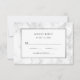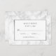 Cartão de resposta de casamento em mármore branco falso com moldura de brilho prateado. Para personalização mais avançada deste design, clique no link "Personalizar ainda mais". Itens correspondentes também estão disponíveis.
